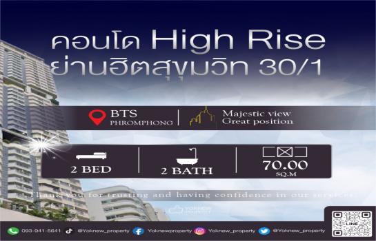 ห้อง 2 ห้องนอนขนาดใหญ่ ชั้นสูง วิวสวย โล่ง