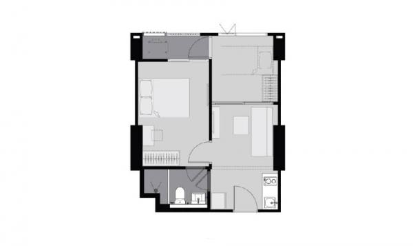 - 1ห้องนอน, 1ห้องเอนกประสงค์, 1ห้องน้ำ, ห้องรับแขก+ห้องครัว, ระเบียง