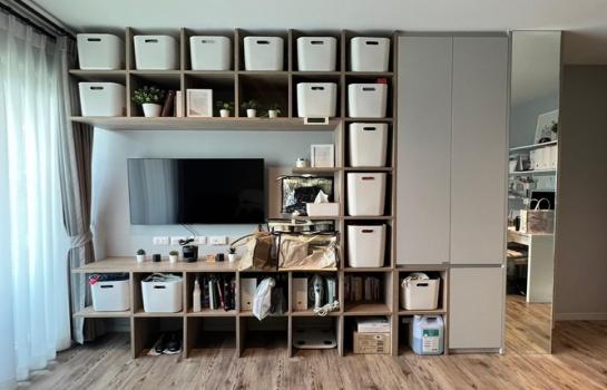 โต๊ะทานข้าว 4 ที่นั่ง, โซนทำงาน, TV, เตียง+ฟูก 5 ฟุต,ตู้เสื้อผ้า Built-in 2 ตู้, โต๊ะเครื่องแป้ง Built-in พร้อมกระจกยาว,