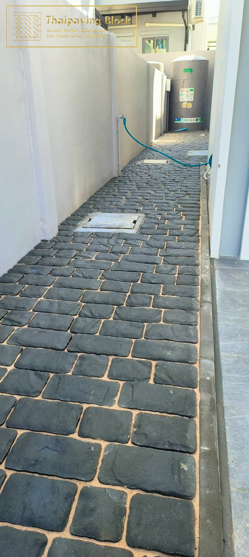 - ปาดเรียบ ปรับสโลปทิศทางน้ำ ปูบล็อก และทำ Compact Interlocking หลังปูเสร็จ