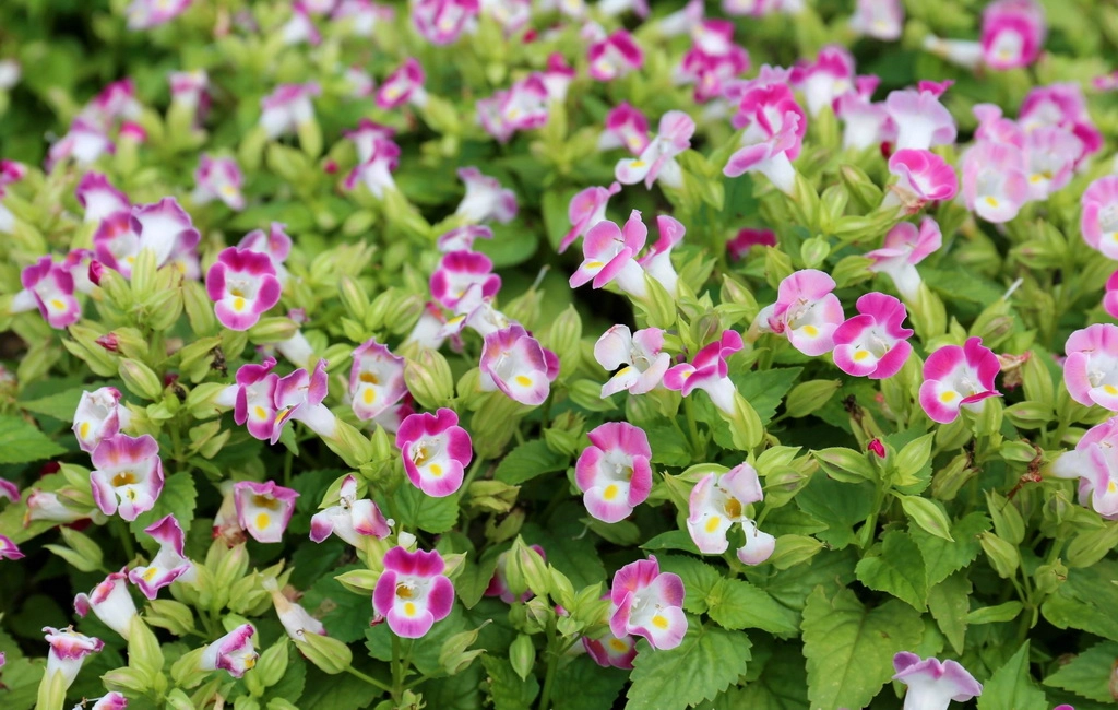 แววมยุรา หรือ ทอรีเนีย (Torenia / Wishbone Flower) มีชื่อทางวิทยาศาสตร์ว่า Torenia fournieri เป็นไม้ดอกอายุสั้นที่เหมาะสำหรับปลูกในกระเช้าแขวน เนื่องจากมีลำต้นเป็นพุ่มและมีดอกรูปทรงถ้วยหลากสีสันที่บานอย่างต่อเนื่องตลอดทั้งปี ต้นไม้ชนิดนี้เหมาะสำหรับพื้นที่ที่มีแสงแดดในตอนเช้าและร่มเงาในตอนบ่าย โดยเฉพาะในสภาพอากาศร้อน ซึ่งจะช่วยให้ดอกบานสะพรั่งอย่างอุดมสมบูรณ์ การดูแลรักษาทำได้ง่าย เพียงแค่ปลูกในดินที่ชื้นและอุดมสมบูรณ์ และรดน้ำสม่ำเสมอเพื่อป้องกันไม่ให้ดินแห้ง นอกจากนี้ยังสามารถเด็ดยอดอ่อนเพื่อให้ต้นแตกพุ่มแน่นขึ้นได้