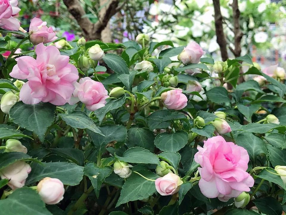 เทียนกุหลาบหรือเทียนดอกซ้อน (Double Impatiens) เป็นไม้ดอกที่เหมาะสำหรับปลูกในกระเช้าแขวนสำหรับพื้นที่ร่มรื่น ด้วยลักษณะการเติบโตที่เป็นพุ่มและมีดอกบานสะพรั่งตลอดทั้งปี ทำให้เป็นตัวเลือกที่ยอดเยี่ยมในการเพิ่มสีสันให้กับบริเวณที่ไม่ได้รับแสงแดดจัด โดยเฉพาะอย่างยิ่งพันธุ์ดอกซ้อนที่มีลักษณะคล้ายดอกกุหลาบ ให้ความสวยงามสะดุดตาและมีหลากหลายสีสันให้เลือก ดูแลรักษาง่าย ไม่ต้องคอยตัดแต่ง และยังช่วยดึงดูดแมลงผสมเกสร ทำให้สวนของคุณมีชีวิตชีวามากยิ่งขึ้น