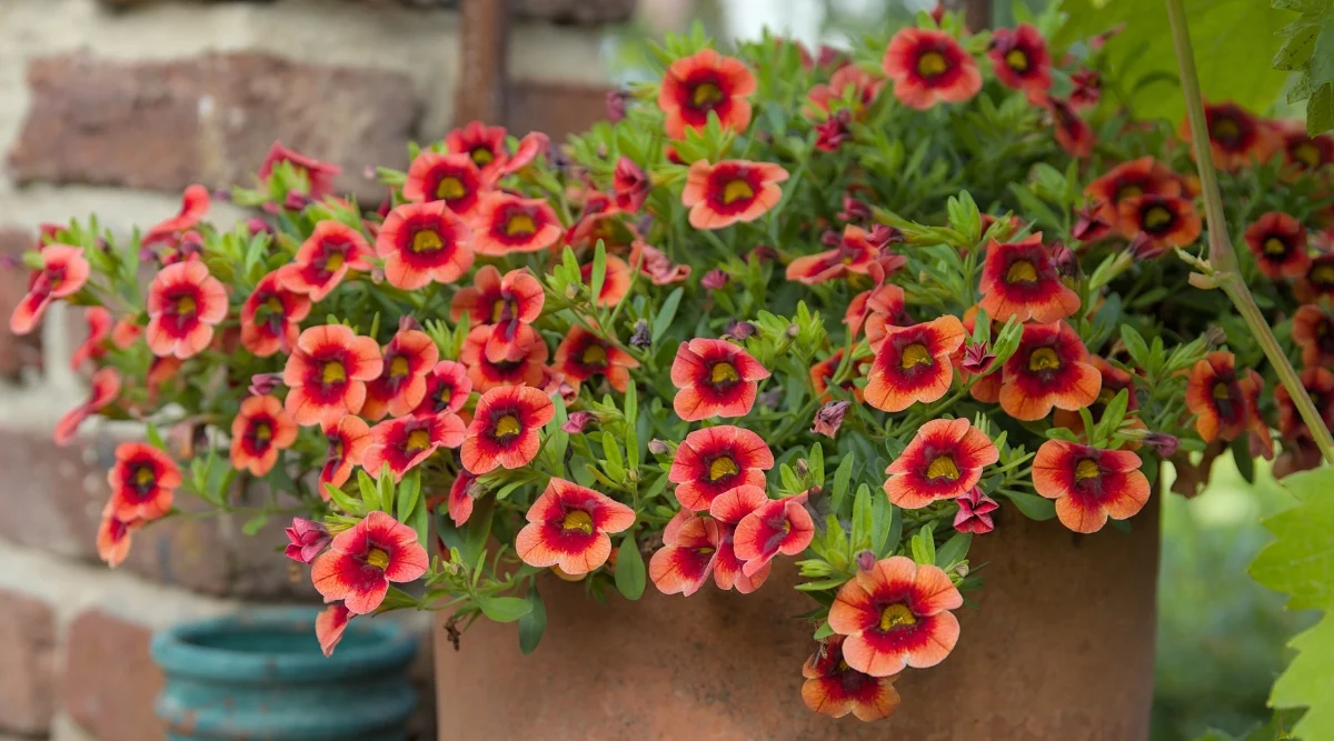 คาลิบราโชอา (Calibrachoa) หรือ Million Bells เป็นตัวเลือกที่ยอดเยี่ยมสำหรับไม้แขวนนอกบ้าน เพราะมีดอกรูปแตรขนาดเล็กหลากสีสันบานสะพรั่งอย่างต่อเนื่องตลอดทั้งปี ต้นไม้ชนิดนี้ดูแลรักษาง่าย ไม่ต้องคอยเด็ดดอกที่เหี่ยวเฉา และยังทนทานต่อโรคและแมลงศัตรูพืชได้ดีเยี่ยม ด้วยลักษณะการเจริญเติบโตแบบเลื้อยและดอกที่ดกแน่น จึงเหมาะอย่างยิ่งสำหรับการปลูกในกระเช้าแขวน กระถางหน้าต่าง หรือภาชนะต่าง ๆ ซึ่งจะช่วยเพิ่มสีสันและความสดใสให้แก่สวนของคุณ