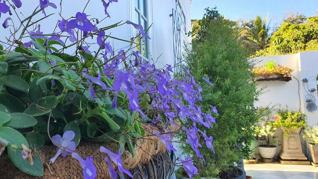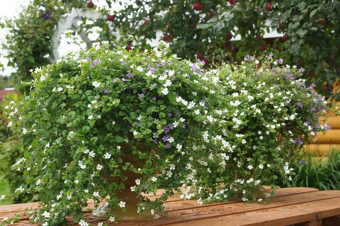 บาโคปา หรือ Sutera Cordata เป็นตัวเลือกที่สมบูรณ์แบบสำหรับกระเช้าแขวน ด้วยลักษณะการเติบโตแบบกิ่งเลื้อยที่แผ่ขยายได้กว้าง พร้อมด้วยดอกเล็ก ๆ สีสันสวยงามบานสะพรั่งอย่างต่อเนื่องตลอดทั้งปี ต้นไม้ชนิดนี้มีความทนทานสูง ปลูกง่ายและดูแลรักษาน้อยมาก ไม่ต้องตัดแต่งกิ่ง นอกจากนี้ยังทนทาน เติบโตได้ในสภาพแวดล้อมที่หลากหลาย ตั้งแต่แดดจัดไปจนถึงร่มเงาบางส่วน ทำให้เป็นไม้ประดับที่น่าสนใจและปรับตัวได้ดี เหมาะสำหรับนักจัดสวนตั้งแต่มือใหม่ไปจนถึงมืออาชีพ