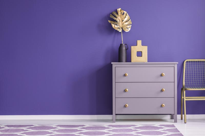 สีม่วงเป็นสีที่ค่อนข้างเข้มและหนัก ซ่อนความร้อนแรง แต่ในขณะเดียวก็ก็ดูลึกลับ ฉะนั้นถ้าใครชอบแต่งห้องแนวดอกไม้หน้าร้อน เช่น ดอกไลแลค จะลองทาผนังสีม่วงดู ก็ไม่เสียหาย ยิ่งไปกว่านั้นการใช้สีโทนนี้ตกแต่ง ยังช่วยให้ห้องขนาดเล็กดูกว้างขวางมากขึ้นอีกต่างหาก ที่สำคัญคือสีม่วงยังช่วยดันให้เฟอร์นิเจอร์สีอื่นๆ ในห้องดูโดดเด่นขึ้นมาได้อีกด้วย สีทาบ้านน่าสนใจในโทนสีม่วง ได้แก่