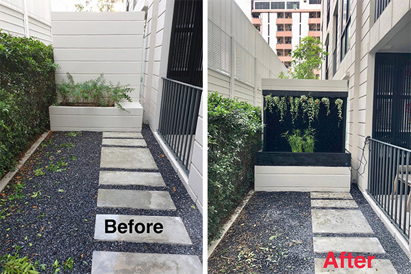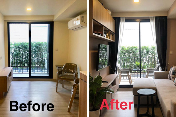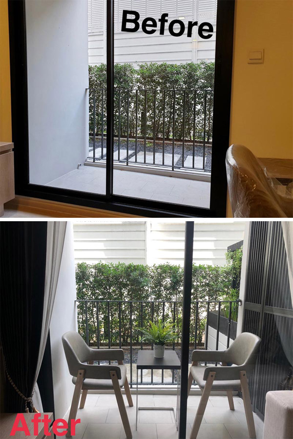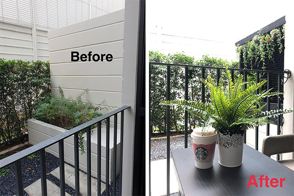 ตกแต่งคอนโด 1 ห้องนอน ชั้นล่างสุด พร้อมตกแต่งระเบียง และสวนหลังบ้าน