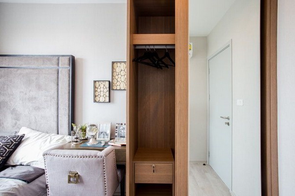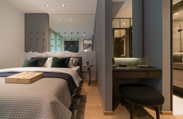 เฟอร์นิเจอร์ที่มีความยืดหยุ่นและสามารถปรับเปลี่ยนได้ถือเป็นตัวช่วยสำคัญสำหรับพื้นที่อยู่อาศัยขนาดจำกัดอย่างคอนโดที่ต้องครบครันทุกฟังก์ชั่นใช้งานบนพื้นที่ที่มีอยู่ แทนที่จะเลือกใช้ตู้ข้างเตียงเป็นโซนจัดเก็บของใช้หรือวางของเล็กน้อยภายในห้องนอน ลองปรับเปลี่ยนเป็นโต๊ะทำงานขนาดเล็กที่มาพร้อมฟังก์ชั่นลิ้นชักจัดเก็บ ก่อนที่จะเสริมด้วยเก้าอี้นั่งทำงานแบบพับจัดเก็บสะดวก โดยใช้ดีไซน์ด้านข้างของโต๊ะเป็นตัวกั้นส่วนใช้สอยระหว่างโซนพักผ่อนบริเวณเตียงนอนและมุมโต๊ะทำงาน ซึ่งสามารถใช้เป็นที่วางโคมไฟสำหรับส่องสว่างยามค่ำคืนบริเวณพื้นที่หัวเตียง และยังสามารถใช้เป็นมุมนั่งทำงานไปพร้อมกัน จึงช่วยให้คุณสามารถประหยัดพื้นที่ใช้งานและใช้สอยประโยชน์บนพื้นที่ส่วนตัวได้ตามต้องการ