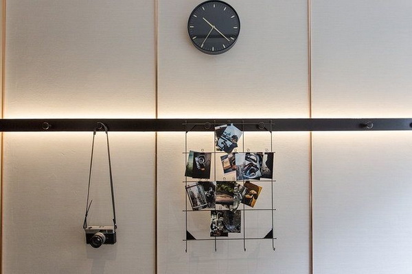 ใช้พื้นที่บนผนังให้คุ้มค่า ด้วยการติดตั้งราวแขวนของใช้ส่วนตัวในบริเวณมุมนั่งทำงาน อาจเสริมด้วยชั้นวางติดผนังขนาดเล็กสำหรับใส่อุปกรณ์เครื่องใช้สำนักงาน นำแผ่นไม้มา DIY เป็นบอร์ดสำหรับติดโน้ตเกี่ยวกับงานที่ต้องทำ เพื่อให้คุณสนุกกับมุมทำงานได้มากขึ้นบนพื้นที่พักผ่อนส่วนตัวที่จำกัดด้วยขนาดการใช้สอย