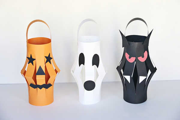 วิธีทำโคมไฟกระดาษของ ง่ายจนเด็ก ๆ สามารถทำเองได้ ขั้นแรกให้พับกระดาษขนาด 8 ½ x11 นิ้ว ลงครึ่งหนึ่งตามแนวยาว พยายามเลือกกระดาษสีขาว สีดำ หรือสีส้มเพื่อให้เข้าธีมวันฮาโลวีน จากนั้นใช้ไม้บรรทัดวัดตามแนวนอน ทำจุดห่างกันประมาณ 1 นิ้ว ตั้งแต่ฝั่งหนึ่งไปจนสุดอีกฝั่งหนึ่ง แล้ววาดเส้นแนวตั้งตามแต่ละจุด ความยาวเกือบชิดขอบปลายกระดาษ โดยให้เหลือไว้ประมาณ ½ นิ้ว นำกรรไกรมาตัดตามเส้นในขณะที่กระดาษยังพับอยู่ เสร็จแล้วกางออก พร้อมทำปลายกระดาษชนกันและเแม็กซ์ติดให้เรียบร้อย สุดท้ายวาดตา หู จมูก ปาก เขี้ยว หรืออะไรก็แล้วแต่ลงในกระดาษแผ่นอื่น ตัดและนำมาติดตกแต่งบนโคมไฟได้ตามใจชอบ อ้อ อย่าลืมใส่หลอดไฟเข้าไปข้างในด้วยล่ะ