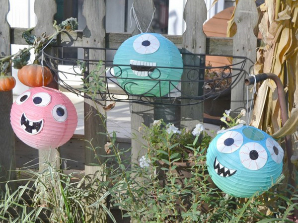 รับรองว่าโคมไฟสัตว์ประหลาดตัวนี้จะไม่ทำให้เด็ก ๆ ขวัญเสียแน่นอน เพราะออกแบบอย่างสร้างสรรค์ เน้นกระดาษสีสวยและลวดลายน่ารัก โดยวิธีการทำ คือ นำโคมไฟกระดาษทรงกลมหรือโคมไฟกระดาษของจีนสีอะไรก็ได้มาเตรียมไว้ ลองใช้เป็นสีชมพูหรือสีฟ้าสำหรับใครที่อยากได้ความน่ารัก แต่สำหรับใครที่ต้องการความน่ากลัว ก็จัดหนักสีดำ สีส้มมาได้เลย หลังจากนั้นก็ใช้ปากกาเมจิกวาดตาและปากของสัตว์ประหลาดตามจินตนาการบนกระดาษสติ๊กเกอร์ ตัดให้เป๊ะและนำไปติดบนโคมไฟให้สวยงาม เท่านี้ก็เสร็จเรียบร้อย ทว่าสำหรับคนที่จะแขวนไว้นอกบ้าน แนะนำให้ใช้กาวร้อนเสริม ก็จะช่วยให้ติดทนแน่น ไม่ร่วงหลุดลงมานั่นเอง