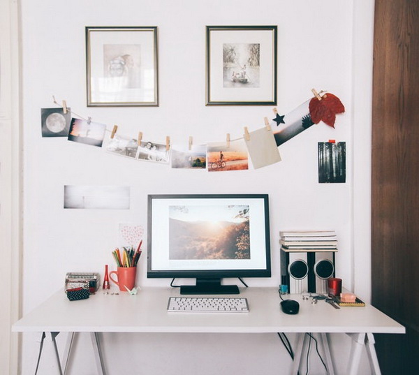 ไม่ว่าจะทำงานที่บ้านหรือที่สำนักงาน งานศิลปะคือสิ่งที่จะช่วยผลักดันให้เกิดแรงบันดาลใจ และสะท้อนความเป็นตัวตนของคุณ สำหรับสิ่งที่เราอยากแนะนำคือให้ติดตั้งหิ้งลอยที่มีความยาวมากกว่าพื้นที่ทำงาน หรือใกล้กับชั้นวางของ สำหรับการเลือกผลงานศิลปะนั้นคือให้เลือกงานศิลปะที่สร้างแรงบันดาลใจ ภาพที่ให้อารมณ์เชิงบวก หรือผลงานของศิลปินที่ทำให้คุณรู้สึกว่าเป็นการเริ่มต้นที่ดี ซึ่งควรมีผลงานศิลปะในขนาดที่แตกต่างกัน รวมถึงดีไซน์เฟรมที่ไม่เหมือนกัน อีกทั้งชิ้นส่วนเหล่านี้จะต้องสามารถปรับเปลี่ยนได้ตลอดเวลาเมื่อรู้สึกเบื่อ