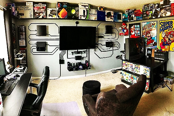 เมื่อการเล่นเกมไม่ได้จำกัดแค่กับเด็ก เกมในปัจจุบันถูกออกแบบมาเพื่อตอบสนองกับผู้เล่นทุกกลุ่ม จะเป็นเด็กหรือวัยไหนๆก็สามารถสนุกกับการเล่นเกมได้ ทั้งยังเป็นการเพิ่มกิจกรรมที่ทำร่วมกันในครอบครัวได้ด้วย โดยเครื่องเล่นเกมที่นิยมเล่นกันในปัจจุบัน อาทิ Play Station 4, X Box หรือ Nintendo Switch ที่ต้องต่อสายเข้ากับจอโทรทัศน์ การเตรียมห้องสำหรับเล่นเกมคือการเลือกตู้วางทีวีที่มีช่องสำหรับวางเครื่องเกมไว้ได้ โดยที่สายต่อไม่เกะกะหน้าจอทีวี รวมไปถึงพื้นที่สำหรับวางอุปกรณ์ในการเล่นเกมต่างๆหรือเครื่องเสียง นอกจากนี้ยังมีอุปกรณ์ที่ช่วยให้การเล่นเกมสนุกมากขึ้นหรือทำให้เกิดการออกกำลังกายในบ้านได้ อาทิ เครื่อง VR, แผ่นรองเกมเต้น, จอยสติ๊กแบบที่ใช้โยกไปมา เป็นต้น ดังนั้นควรเลือกเฟอร์นิเจอร์ในห้องเล่นเกมที่สามารถพับเก็บได้หรือเคลื่อนย้ายได้ง่ายเพื่อเคลียร์พื้นที่สำหรับการกิจกรรมต่างๆ