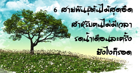 หลายคนอาจจะอยากลองปลูก หรือลองมีต้นไม้ไว้ในบ้าน แต่หลายคนอาจจะไม่มีเวลาในการดูแล รดน้ำ ซึ่งการไม่มีเวลารดน้ำ ก็จะหมายถึงการที่ทำให้ต้นไม้เหี่ยวเฉา และตายได้ ซึ่งวันนี้ เราจะมานำเสนอ เกี่ยวกับต้นไม้ ที่เหมาะกับไลฟ์สไตล์แบบคนไม่ค่อยมีเวลากันครับ ซึ่งจะเป็นต้นไม้ในแบบที่ไม่ต้องรดน้ำมากนัก ก็สามารถอยู่ได้ ซึ่งจะมีต้นอะไรบ้าง ไปดูกันครับ