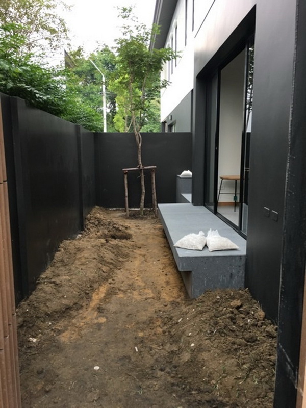 เรื่องเริ่มมาจากผมอยากมีบ้านหลังแรก เลยมาซื้อบ้านที่โครงการหนึ่งเป็นบ้านแฝด ตัวที่ดินมีขนาดประมาณ 36 ตารางวา ดีไซน์ของหมู่บ้านจะเป็นมินิมอลเซน ๆ หน่อย เลยตั้งใจจะทำ Interior ให้เข้ากับตัวบ้าน รวมถึงพื้นที่สวนด้านข้างที่มีพื้นที่กว้างเกือบ 2 เมตร ยาว 12.5 เมตรนี้ ให้กลายเป็นสวนญี่ปุ่นไปด้วย ผมอยากได้สวนโรยกรวดที่ดูแลง่าย ๆ มีอ่างหินน้ำล้น และน้ำไหลจากไม้ไผ่แบบที่เราเห็นตามสวนญี่ปุ่นทั่ว ๆ ไปด้วย งั้นมาเริ่มกันเลยครับ