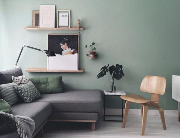 การแต่งห้องด้วยผนังสีเทาเข้มให้ความมืด ดิบ เท่ และซับซ้อน ฉะนั้นเมื่อเพิ่มสีสวย ๆ สดใส ๆ อย่างสีเขียวมรกต สีเขียวนกเป็ดน้ำ หรือสีเขียมอมน้ำเงินเข้าไป ก็จะทำให้ห้องดูสว่าง สดชื่น และน่าใช้งานมากยิ่งขึ้น เรียกได้ว่าเป็นอีกหนึ่งเคล็ดลับสำคัญของคนที่อยากได้ห้องดาร์ก ๆ แต่ไม่ต้องการให้มืดทึบ อึมครึมเกินไปเลยล่ะ