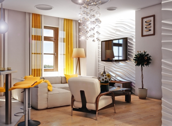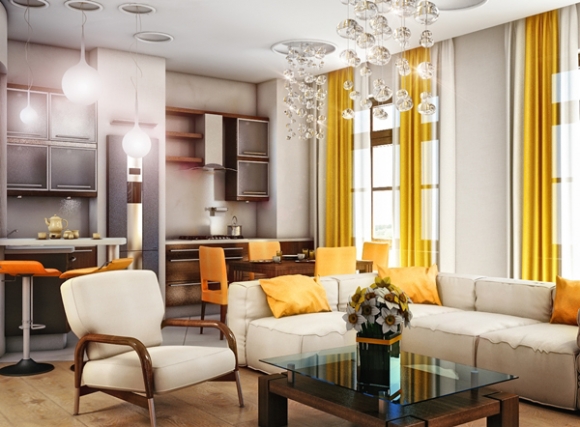 ห้องรับแขกสีเหลืองสดใส ผสมกับความเรียบง่ายของสีเบจ ที่ตัดกันอย่างลงตัว แบบห้องรับแขกสีเหลืองสไตล์ร่วมสมัย จะสวยแค่ไหนเรามีตัวอย่างมาฝาก