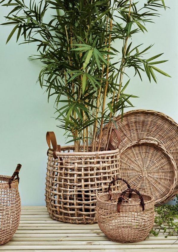 ช่วงนี้กำลังฮิตเลยกับการปลูกต้นไม้ภายในบ้าน แต่จะใช้กระถางพลาสติกสีดำธรรมดาก็จะไม่งาม ลองหยิบเอา ตะกร้าหวายทรงที่มีความสูงสักหน่อย จะมีหูหิ้วหรือไม่มีก็ได้ ใส่ต้นไม้พร้อมกระถางอันเก่าเข้าไปได้เลย เท่านี้ก็พร้อมเปลี่ยนหน้าที่เป็นกระถางต้นไม้เก๋ๆ แล้ว เพราะด้วยสีธรรมชาติๆ แบบนี้แหละเข้ากับต้นไม้สุดๆ ไปเลย วางมุมไหนของบ้านก็สวยยย