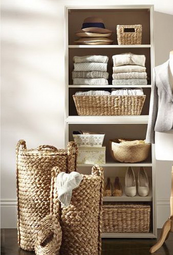 สำหรับใครที่ไม่ถนัดงานฝีมือเอาซะเลย จะให้ทาสี เพ้นท์ลายก็คงไม่น่าจะรอดเท่าไหร่นัก ถ้าอย่างนั้นเปลี่ยนตะกร้าหวายใบเดิม ให้กลายเป็นที่จัดระเบียบของใช้ในบ้านกันดีกว่า ไม่ว่าจะเป็นของใช้ในตู้เก็บของที่วางปะปนกันมั่วไปหมด หรือจะเป็นขวดน้ำยาทำความสะอาดบริเวณใต้อ่างล้างจานก็ตาม แล้วอย่าลืมเขียนป้ายระบุถึงหมวดหมู่ของสิ่งของที่เก็บไว้อย่างชัดเจนเท่านี้ก็เรียบร้อย นอกจากจะหาของได้ง่าย บ้านยังเป็นระเบียบมากขึ้นอีกด้วย