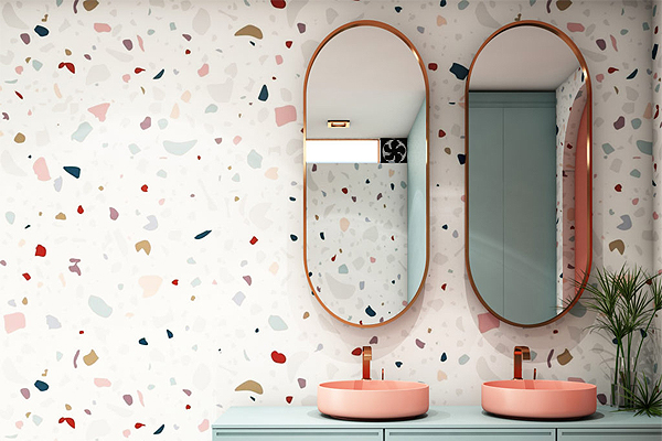 เราสามารถเพิ่มมิติให้ห้องน้ำด้วยการใช้หินขัดทำเป็นผนังห้องน้ำ ซึ่งให้ความรู้สึกทันสมัย และยังให้รูปลักษณ์ที่เป็นมินิมอลอีกด้วย