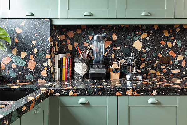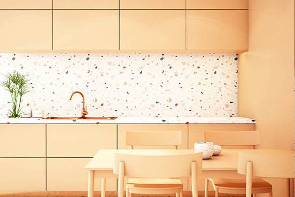 ลองนำหินขัดมาประดับตกแต่งในห้องครัว จากปกติที่พื้นที่นี้จะถูกใช้สำหรับทำอาหารที่อยู่กับอุปกรณ์ เครื่องใช้มากมาย การเพิ่มสีสันของหินขัดเข้ามาจะทำให้ห้องครัวนั้นมีบรรยากาศและสไตล์ที่เปลี่ยนไป