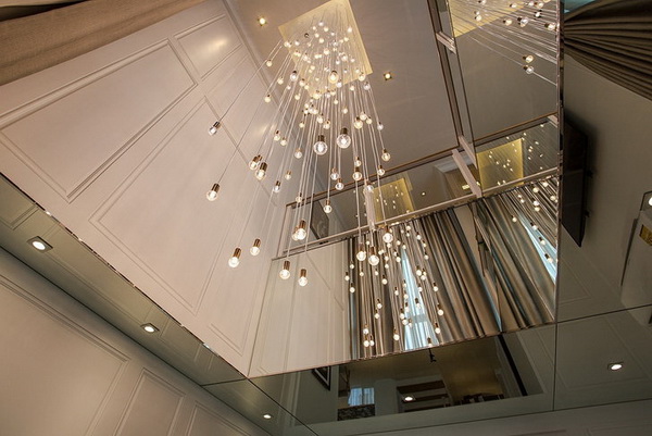 บ้านที่ได้รับการออกแบบให้มาพร้อมดีไซน์โถงเพดานสูงจะมีพื้นที่ว่างมากกว่าพื้นที่ส่วนอื่นของบ้าน จึงเหมาะสำหรับการประดับตกแต่งด้วยโคมไฟระย้าบนโถงเพดานสูง เพื่อเพิ่มความหรูหราและเติมเต็มพื้นที่ใช้สอยให้สวยงามอย่างสมบูรณ์แบบ โดยโคมไฟระย้าที่ได้รับการออกแบบให้โดดเด่นด้วยดีไซน์สุดพิเศษจะช่วยผสานส่วนใช้สอยภายในบ้านที่ดูโล่งกว้างให้ลงตัวมากยิ่งขึ้น