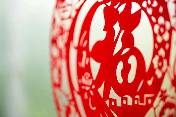 การประดับบ้านด้วยกระดาษฉลุลายนั้นสะท้อนถึงการมอบโชคและความสุข การตัดกระดาษนั้นถือเป็นงานศิลปะประเภทหนึ่งที่ชาวจีนนิยม โดยทั่วไปจะใช้สีอะไรก็ได้ แต่ส่วนใหญ่จะใช้กระดาษสีแดง เมื่อตัดกระดาษได้ลวดลายโดยลวดลายที่ใช้จะเป็นรูปพืช หรือสัตว์อันเป็นสิริมงคล เช่นลูกพีชเป็นสัญลักษณ์ของอายุยืน ทับทิมความอุดมสมบูรณ์; เป็ดแมนดารินรัก ต้นสน, ดอกโบตั๋นเกียรติและความมั่งคั่ง ฯลฯ จากนั้นนำไปประดับที่หน้าต่างบ้านที่มีความโปร่งแสง