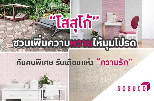 สำหรับใครที่สนใจ อยากหาแบบกระเบื้องปรับปรุงพื้นที่พิเศษเฉพาะตัว หรือพื้นที่พิเศษ สำหรับคนพิเศษ เพิ่มเติมสามารถเลือกชมลวดลายของกระเบื้อง หรือดีไซน์การแต่งบ้านเก๋ ๆ อีกเพียบ ได้ที่ www.sosuco2008.co.th หรือ เฟสบุ๊คแฟนเพจ https://www.facebook.com/sosuco2008