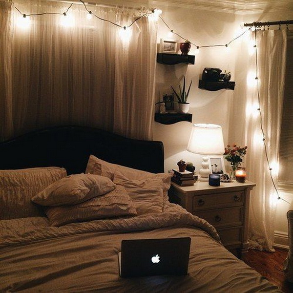 ใครที่ชอบถ่ายรูปเวลาไปเที่ยวตามสถานที่ต่างๆ เชื่อว่าในโทรศัพท์ต้องไม่มีไม่ต่ำกว่า 30 รูปแน่ๆ ดังนั้นเราก็เอาสิ่งที่ชอบนี่แหละปริ้นออกมาติดตรงผนังห้อง ทำเป็นรูปต่างๆ เช่น หัวใจ ชื่อตัวอักษร หรือเอามาติดกับสายไฟให้มีแสงวิบวับก็ได้ ซึ่งไอเดียนี้ก็ถือเป็นการทบทวนย้อนความทรงจำที่เราได้ไปเที่ยวกันมาอีกด้วย
