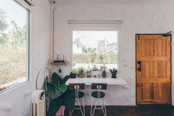 ปรับเปลี่ยนพื้นที่ใช้สอยในบ้านให้กลายเป็นมุมนั่งทำงานสุดคูลแบบไม่เปลืองพื้นที่ใช้งาน โดยการใช้พื้นที่บริเวณผนังของบ้านให้เป็นประโยชน์ ด้วยการเลือกโต๊ะแบบติดผนังมาติดตั้งบนผนังบ้านในบริเวณที่ต้องการ หากต้องการสร้างบรรยากาศแห่งการทำงานให้ชวนผ่อนคลายแนะนำให้ติดตั้งโต๊ะทำงานติดผนังในบริเวณที่ใกล้กับพื้นที่ริมหน้าต่างของบ้าน เพื่อให้สามารถเปิดรับบรรยากาศวิวทิวทัศน์ภายนอกบ้านได้อย่างรื่นรมย์ จากนั้นให้เลือกใช้เก้าอี้ที่มีดีไซน์นั่งสบายและมีระดับความสูงที่ได้สัดส่วนลงตัวกับโต๊ะทำงาน เพื่อป้องกันอาการปวดเมื่อยในระหว่างวัน