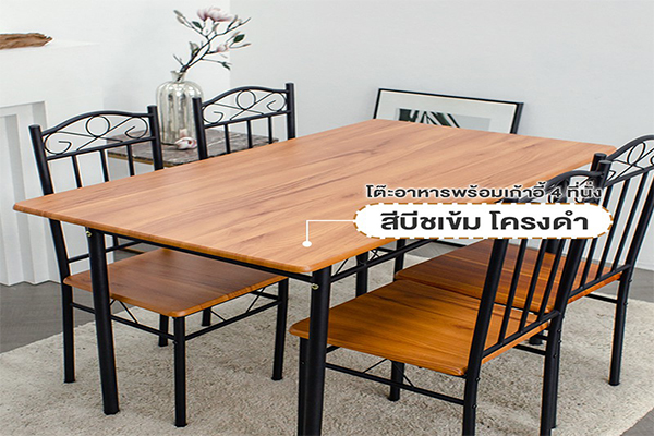 ตัวโครงสร้างทำมาจากเหล็กพ่นสีกันสนิม แข็งแรง ทนทาน หน้าโต๊ะไม้ MDF เคลือบแผ่น PVC ลายไม้เสมือนจริง (3D) คุณภาพดี ทนต่อรอยขีดข่วน ทำความสะอาดง่าย ทนความร้อนได้ดี เคลือบกันน้ำ กันรอย ทำความสะอาดง่าย อายุการใช้งานยาวนาน เก้าอี้นั่งสบาย รองรับน้ำหนักได้สูงสุด 120 kg โต๊ะรับน้ำหนักได้สูงสุด 75 kg น้ำหนักเบา เคลื่อนย้ายสะดวก