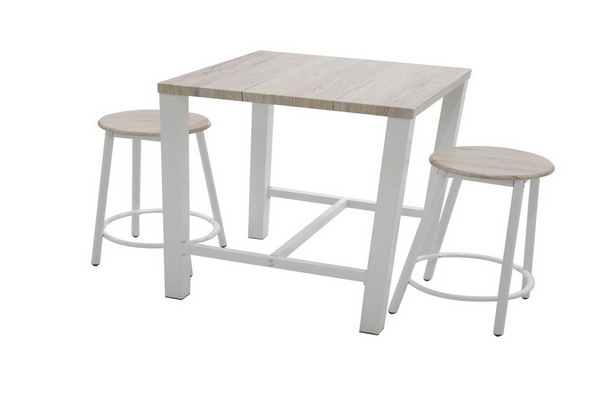 ชุดโต๊ะกินข้าวสีขาวแบบบาร์สุดทันสมัย วางได้ทั้งภายในและภายนอกรวมถึงพื้นที่จำกัด เช่น ระเบียง สำหรับ 2 ที่นั่ง โต๊ะสามารถรองรับน้ำหนักได้สูงสุด 30 กิโลกรัม เก้าอี้สามารถรองรับน้ำหนักได้สูงสุด 100 กิโลกรัม ขาโต๊ะทำจากโครงเหล็กปิดด้วยท็อปไม้เคลือบผิวเพิ่มความแข็งแรงทนทานและเหมาะกับการใช้งาน