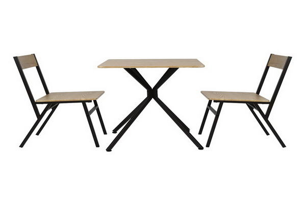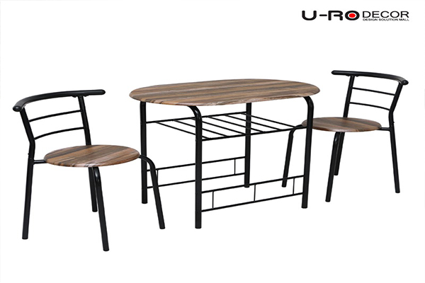 ชุดโต๊ะกินข้าว 2 ที่นั่ง โครงเหล็ก ปิดด้วยท็อปไม้ MDF ความหนา 15 มิลลิเมตร ผิวเนียนเรียบ ลายไม้ธรรมชาติ เคลือบ PVC ป้องกันรอยขีดข่วน มาพร้อมกับตะแกรงใต้โต๊ะสำหรับวางของ เพิ่มฟังก์ชันให้เป็นมากกว่าโต๊ะอาหาร ตกแต่งบ้านให้ดูดี มีระดับ และสวยงามมากยิ่งขึ้น