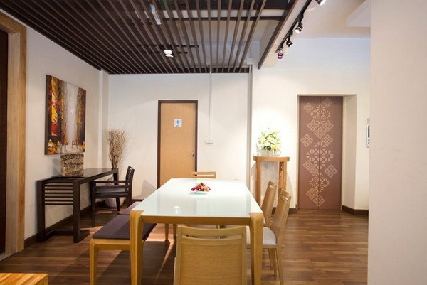 ตกแต่งฝ้าเพดานด้วยระเแนงไม้ตกแต่ง สำหรับพื้นที่ภายในบ้านที่ไม่ได้มีการทำฝ้าเพดาน แต่อยากตกแต่งเพิ่มความเป็นธรรมชาติให้มุมบ้านในบริเวณที่ต้องการ แนะนำให้ลองใช้ไอเดียระแนงไม้ตกแต่งเป็นฝ้าเพดานของบ้านในบริเวณที่ต้องการสร้างจุดเด่น ก็สามารถเติมเต็มเสน่ห์ธรรมชาติให้พื้นที่ภายในบ้านอบอุ่น รื่นรมย์ และมีเสน่ห์มากขึ้นอีกเท่าตัว