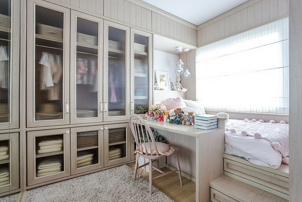 สำหรับคนทำงานอิสระที่มีความจำเป็นต้องแต่งบ้านให้เป็นโฮมออฟฟิศส่วนตัว การแบ่งพื้นที่พักผ่อนภายในห้องนอนให้เป็นมุมทำงานในตัวก็เป็นไอเดียที่ดี เพราะนอกจากช่วยประหยัดพื้นที่ใช้งานอื่นๆ ในบ้านมากขึ้นแล้ว พื้นที่ในบริเวณนี้ยังช่วยให้คุณสามารถพักผ่อนได้ทันทีที่ต้องการ แต่ควรเป็นมุมทำงานขนาดเล็กที่ไม่ต้องการพื้นที่ใช้งานมาก แค่จัดวางโต๊ะทำงานเล็กๆ ไว้สำหรับนั่งทำงานส่วนตัว พื้นที่ในห้องนอนนี้ก็เพียงพอสำหรับเป็นมุมนั่งทำงาน