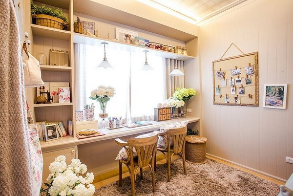 เพราะบรรยากาศของห้องทำงานที่เป็นทางการมากเกินไปอาจทำให้ดูน่าเบื่อ โดยเฉพาะพื้นที่ภายในบ้านที่ดัดแปลงเป็นโฮมออฟฟิศสำหรับนั่งทำงาน การผสมผสานไอเดียการตกแต่งห้องทำงานให้มีบรรยากาศอบอุ่น ผ่อนคลายในแบบบ้านอยู่สบายจึงเป็นแนวคิดที่ดี ซึ่งคุณสามารถตกแต่งห้องทำงานให้มีบรรยากาศเหล่านี้ได้โดยการใช้พรมนุ่มๆ มาปูไว้ในห้อง เน้นการใช้วัสดุที่มีความเป็นธรรมชาติให้มากที่สุด เช่น งานไม้ หวายสาน เป็นต้น ที่สำคัญคือการเลือกใช้โทนสีตกแต่งภายในที่ดูสบายตา หรือจะเติมความสวยงามด้วยของตกแต่งประเภทดอกไม้ หรือรูปภาพต่างๆ ก็ช่วยสร้างบรรยากาศภายในห้องนี้ให้กลมกลืนกับส่วนอื่นๆ ของบ้านมากยิ่งขึ้น