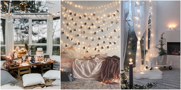 แสงไฟสลัวๆช่วยให้สร้างความอบอุ่น โรแมนติกในค่ำคืนอันหนาวเหน็บ หน้าหนาวนี้ลองเลือกไฟมาประดับตามจุดต่างๆในบ้าน อาจเลือกโคมไฟ ตะเกียง ไฟกระพริบมาประดับไว้ที่หัวเตียงและหน้าต่าง หรือจะติดเป็นไฟแบบไฟซ่อนก็ยิ่งดี เพราะจะช่วยให้ห้องดูมีมิติ หากต้องการความโรแมนติก แนะนำให้จุดเทียนไปเลย และยิ่งถ้าใช้เทียนที่มีกลิ่นอโรม่าเข้าไปนั้น หน้าหนาวนี้รับรองว่าฟินกันเลยทีเดียว