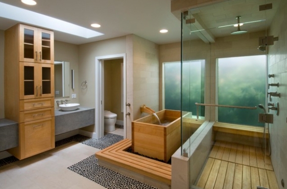 สายน้ำและเสียงน้ำไหลเป็นส่วนหนึ่งของชีวิตชาวญี่ปุ่น เนื่องจากเสียงน้ำไหลจะช่วยให้เกิดความรู้สึกผ่อนคลาย จึงไม่น่าแปลกใจที่ชาวอาทิตย์อุทัยมักจะนอนแช่อยู่ในอ่างอาบน้ำทุกวัน ซึ่งก็หมายความว่าบ้านทุกบ้านของคนญี่ปุ่นก็น่าจะมีเจ้าอ่างอาบน้ำขนาดไม่ใหญ่มาก แต่มีความลึกและมักจะมีที่นั่งเล็ก ๆ อยู่ขอบอ่าง ทว่าหากอยากใกล้ชิดความเป็นญี่ปุ่นมากขึ้นอีกนิด จะเปลี่ยนการตกแต่งห้องน้ำให้เป็นไม้ทั้งหมดด้วยก็ยิ่งดีจ้า