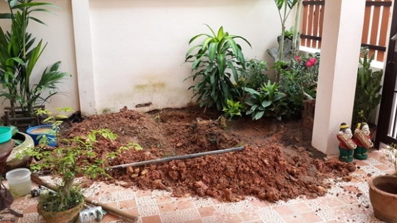 ป.ล. ไม่ควรลงดินทั่วทั้งพื้นปูนรอบ ๆ บ้านครับ ควรเว้นไว้เป็นทางเดินปกติ ควรลงดินเฉพาะบริเวณที่จะปลูกต้นไม้ เป็นจุด ๆ จะทำให้มีความหลากหลายครับ