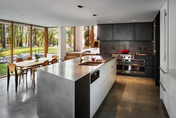 แบบบ้านเดี่ยวหลังใหญ่ ที่ตกแต่งเล่นระดับ บรรยากาศสบาย ๆ ห้อมล้อมด้วยต้นไม้ มีกระจกใสรอบบ้านให้มองวิวธรรมชาติเพลิน ๆ สภาพแวดล้อมเป็นอีกหนึ่งส่วนสำคัญที่คนสร้างบ้านไม่ควรมองข้าม โดยเฉพาะบริเวณที่ล้อมรอบด้วยต้นไม้และธรรมชาติอันสวยงาม แบบบ้านหลังใหญ่เล่นระดับ จาก Joeb Moore & Partners LLC ซึ่งสร้างขึ้นบนพื้นที่โล่งกว้าง พร้อมรายล้อมด้วยไม้ใหญ่ตลอดทุกทิศ จึงออกมาผสมกลมกลืนไปกับธรรมชาติได้อย่างลงตัว ภายใต้โครงสร้างบ้านเก่าที่สร้างขึ้นตั้งแต่สมัยสงครามโลกครั้งที่ 2
