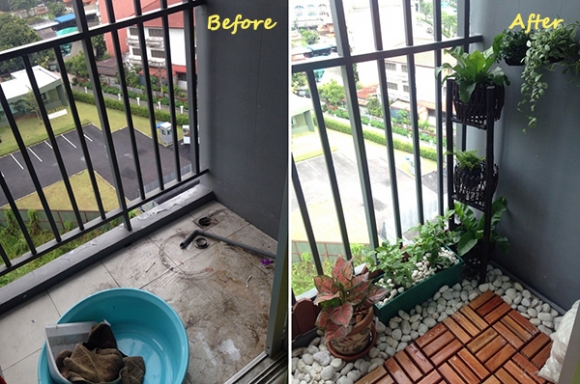 ตกแต่งสวนในคอนโด ด้วยการจัดระเบียบมุมขยะบนระเบียงคอนโด ให้กลายเป็นสวนริมระเบียงคอนโดแสนสดชื่น มนุษย์คอนโดที่ต้องอุดอู้อยู่กับพื้นที่คับแคบไม่มีสวนใหญ่ ๆ ให้สูดอากาศสดชื่นอย่างเต็มปอด หากอยากมีต้นไม้และพื้นที่สีเขียวเอาไว้เป็นมุมพักผ่อนหย่อนใจบ้าง เราลองมาปรับเปลี่ยนพื้นที่รก ๆ บนระเบียงคอนโดของคุณ ให้กลายเป็น สวนในคอนโด ขนาดย่อม ๆ เอาไว้นั่งปลดปล่อยอารมณ์ชิล ๆ