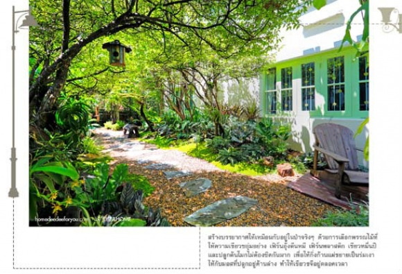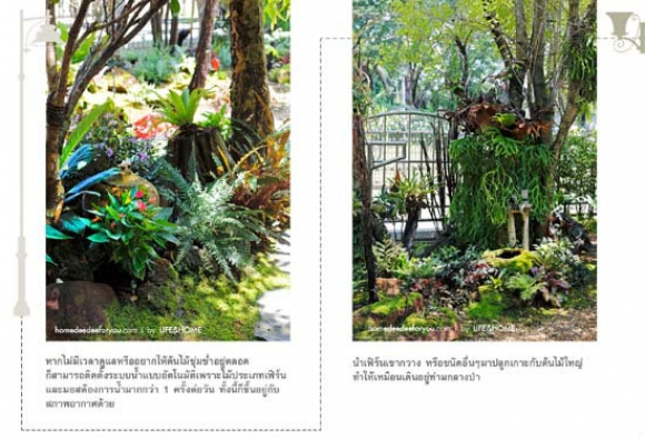 "สวนแห่งความร่มรื่นและทนทานคือสวนสไตล์ป่าดิบชื้น(Rain Forest )"สวนแนวนี้เป็นสวนที่ได้รับความนิยมมาตลอดและคุ้นเคยกันดีกับคนไทย จุดเด่นของสวนแห่งนี้คือมีพรรณไม้เขตร้อนชื้นเป็นองค์ประกอบหลัก ซึ่งส่วนใหญ่คือไม้ใบนั่นเอง