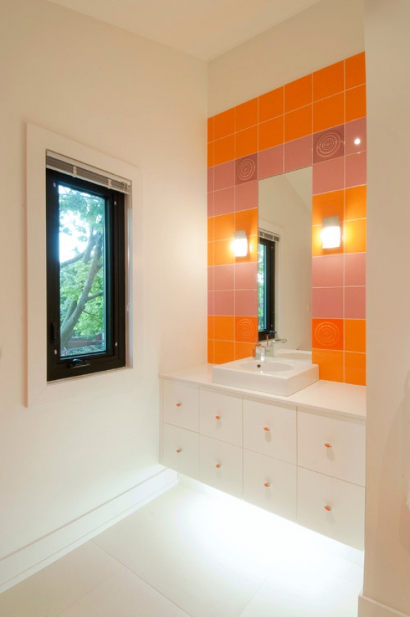 ไม่ว่าขนาดพื้นที่ของห้องน้ำจะเล็กแค่ไหน กระจกทรงยาวจะช่วยขยายพื้นที่ได้ ไม่สร้างความอึดอัดตาแน่นอน แต่ที่สำคัญจะต้องรักษาความสะอาดอย่างมาก ไม่เช่นนั้นกระจกนั้นแหละที่จะสะท้อนสิ่งสกปรกให้เห็นอย่างชัดเจน