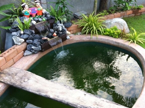 คร่าว ๆ ก็ก่ออิฐแดงเป็นบ่อเล็ก ๆ 2 ขนาด เอามาวางซ้อนกัน (ชั้น1และ 2 แยกจากกันได้) ต่อท่อจากกรองมาจบ หาหิน (หรือขโมยวะ) ตามข้างคลองบ้านนอกหน้าประตูน้ำ มาประดับซักนิด ออกมาเป็นน้ำตกบ้านนอกอีกแล้ว 555 งบประมาณ 300 บาท