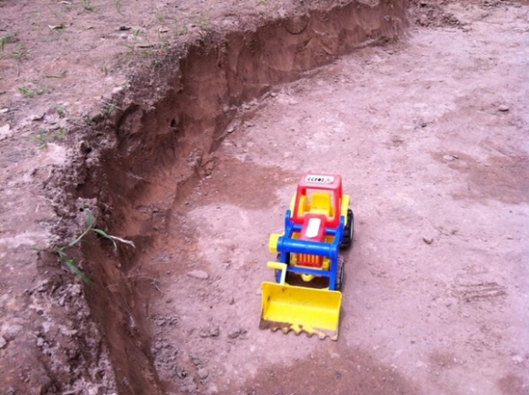 เมื่อมีออพชั่นมาเพิ่ม (ศาลา) เลยต้องทำขาสำหรับตั้งศาลา (งานเริ่มใหญ่) ขุดหลุมฝังเสาแบบมั่ว ๆ เหมือนเคย