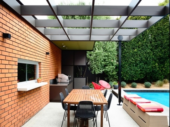 ผนังอิฐโชว์แนวเป็นการตกแต่งบ้านอีกหนึ่งเทรนด์ที่ยังคงฮิตเรื่อยมา ซึ่งหากคุณเป็นหนึ่งในคนที่ชอบการตกแต่งแบบดิบ ๆ แต่มีสไตล์แนวนี้ ก็รับรองว่า แบบบ้านชั้นเดียว จาก Austin Design Associates ซึ่งตกแต่งด้านนอกด้วยผนังอิฐโชว์แนวหลังนี้ น่าจะเป็นอีกหนึ่งแรงบันดาลใจดี ๆ เพราะสีสันจากผนังอิฐโชว์แนวช่วยให้โทนสีขาว-ดำของตัวบ้านดูน่าสนใจมากขึ้น กลายเป็นจุดสนใจของบ้านไปเลย