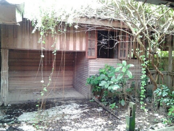 แต่เพื่อนบ้านบอกเข้าไปดูได้ เพราะไม่มีใครสนใจ ข้างในเป็นไม้อย่างดีทั้งหมดครับ ด้วยพอถามจากเพื่อนบ้านคร่าว ๆ แล้ว ผมจึงถือวิสาสะเข้าไปเพราะบ้านไม่มีล็อกอะไรครับ มุดเข้าไปด้านข้าง ซึ่งพอเข้าไปก็จะเจอภาพราว ๆ นี้ครับ แต่รูปนี้ต้องบอกก่อนว่าเป็นรูปหลังจากที่เก็บกวาดไปหน่อยแล้วนะครับ เพราะจริง ๆ แล้ว บ้านรกและขึ้นเป็นป่าเลย