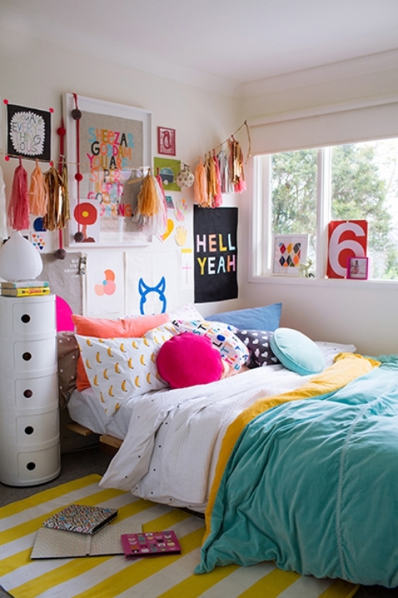 4. เติมความสดใสให้ชีวิตซาบซ่า ด้วยการผสมหลากหลายสีสวยและลวดลายเก๋ ๆ เอาไว้ด้วยกัน อย่าลืมเบรกด้วยสีอ่อนหรือสีขาว เพื่อมีพื้นที่ให้พักสายตาด้วย