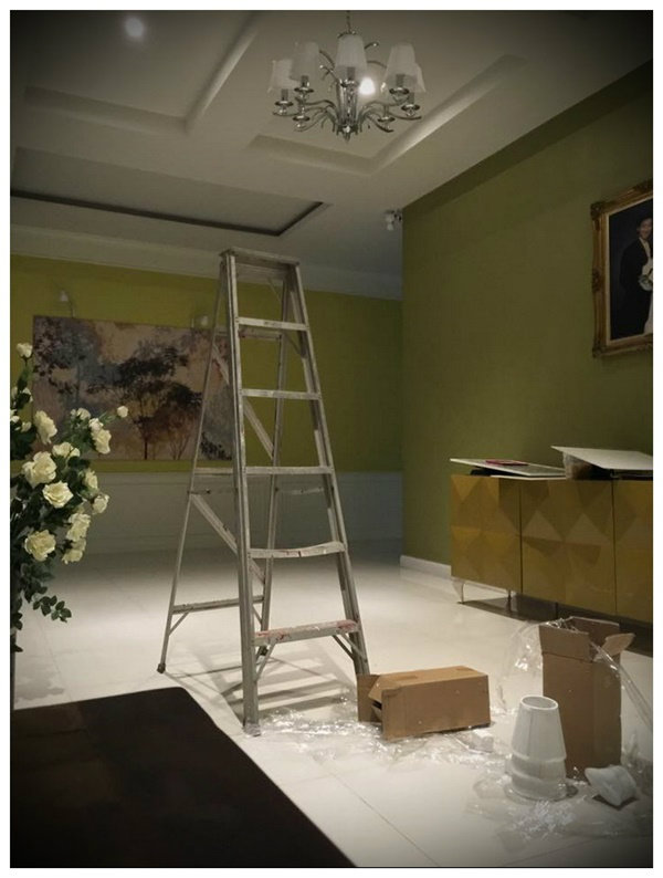ตอนนี้ช่างก็มาติดตั้งบัวบนห้องรับแขกเพิ่มอีกนิดหน่อย เพราะงานที่เหลือยังทำที่โรงงานเพิงน้อยๆ พร้อมหนุ่มกำยำผู้ยังคงถอดเสื้อโชว์ซิกแพคไสไม้เรียกลูกค้าหน้าบ้านเหมือนเดิม 555