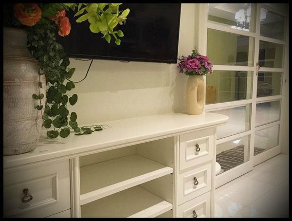 ห้อง Enjoy Eating ของพวกเราค่ะ มีตู้ทีวีน้อยๆ ไว้เก็บนั่นนี่ ปกติไม่ค่อยเปิดทีวีนะคะ แต่เผื่อแขกไปใครมา นิดๆ หน่อยๆ