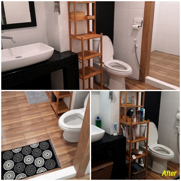 อินเทอร์เน็ตทำให้ชีวิตคนเราง่ายขึ้นจริง ๆ นะ เพราะแต่ก่อนอาจจะต้องจ้างมืออาชีพเกี่ยวกับการตกแต่งบ้านเข้ามาดูแล แต่ยังไงตอนนี้แค่คุณคลิกเข้าไปตามเว็บไซต์ต่าง ๆ ที่มีข้อมูลเกี่ยวกับบ้านก็มีข้อมูลให้ศึกษาแบบละเอียดยิบตั้งแต่แหล่งซื้อของจนถึงวิธีทำ เช่นเดียวกับ คุณ Ingrid สมาชิกเว็บไซต์พันทิปดอทคอม ที่ใช้วิธีศึกษาข้อมูลจากเว็บไซต์เหมือนกัน หลังจากนั้นก็เอามาปะติดปะต่อแล้ววางแผนก่อนลงมือรีโนเวท ห้องน้ำ ของตัวเอง แม้ระหว่างทำจะทำให้รู้สึกเหนื่อยหรือท้อไปบ้างแต่ก็พยายามทำจนสำเร็จ ซึ่งผลลัพธ์ที่ได้บอกเลยว่าสวยไม่เบาทีเดียว